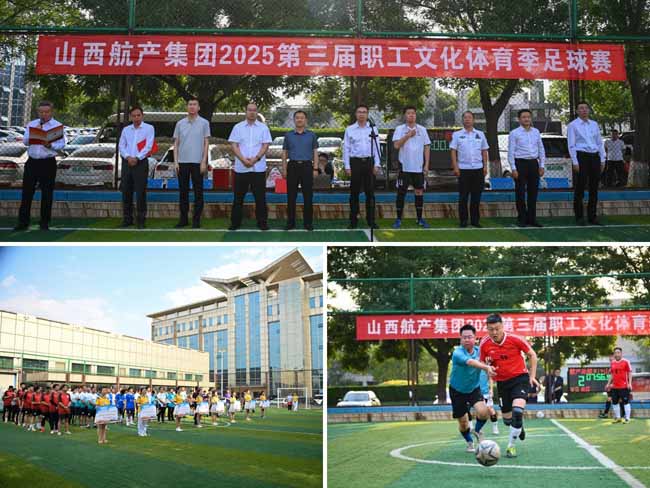 航產集團第三屆職工文化體育季足球賽火熱進行。首輪揭幕戰開始前,進行了簡樸的開幕儀式。航產集團董事會秘書董中杰,山西出入境邊防檢查總站黨委委員、政治處主任連江紅,工商銀行山西省分行副行長趙陽,山西省安裝集團有限公司黨委專職副書記、副董事長、工會主席張琰,中國建筑第八工程局有限公司東北分公司山西公司總經理邴凱,集團工會、職工足球興趣協會負責人,總部機關、太原機場公司負責人和各參賽代表隊參加了本屆比賽開幕式。