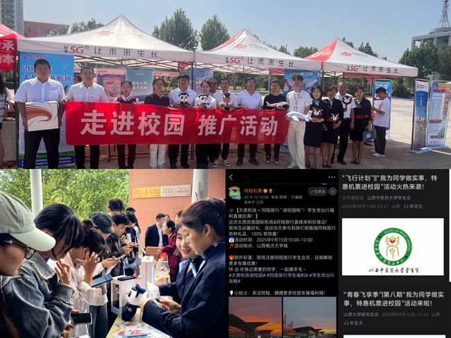在淡季市場背景下,太原機場精準鎖定青年群體,9月中旬聯合中國、深、山、昆、東、海、南、龍江航空及同程旅行等空公司和OTA平臺,在山西傳媒學院、山西中醫藥大學、山西大學(塢城校區)、山西大學(東山校區)開展“我為師生辦實事、機票進校園”系列活動。此次活動獲得了廣泛關注,同程旅行通過官方微博積極宣傳,山西中醫藥大學公眾號、山西大學公眾號也發布了相關推文,共同擴大了活動影響力,有效激發了青年學子的出行熱情。此舉不僅彰顯了太原機場“以旅客為中心”的服務理念,更積極踐行社會責任,助力構建青年友好型航空樞紐。